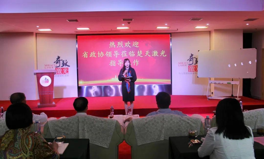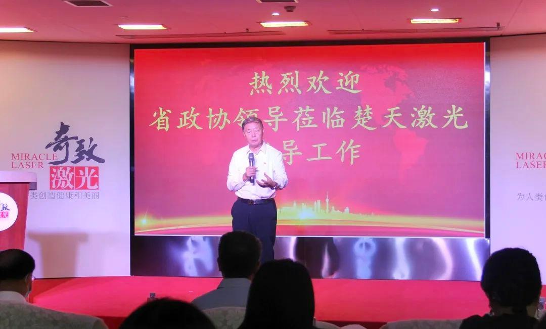 孫文董事長首先匯報了楚天激光的發展歷程,講述了楚天激光在發展過程中,緊密結合市場需求的不斷創新的創業史,包括早期在激光焊接領域的開創性的工作,在激光醫療、激光文旅、工業激光等板塊的開拓性、創新性工作。其中講到和境外企業在激光醫療方面合作時,遇到卡脖子問題,在集團上下齊心協力、自力更生、自主研發后,取得重大突破。目前奇致激光已經在激光醫療方面申請了多項技術專利,產品暢銷國內外,把曾經卡脖子的境外企業逐步逼出中國市場。
